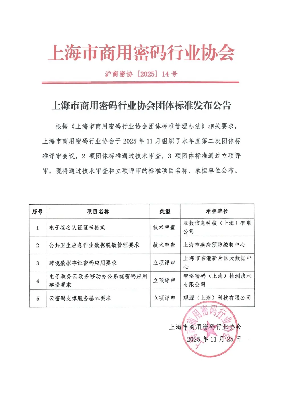 近日,由亚数信息科技(上海)有限公司(以下简称“亚数”)发起,并由其北京分公司总经理魏一才牵头编制的团体标准《电子签名认证证书格式》在上海市商用密码行业协会组织召开的年度第二次团体标准评审会议上顺利通过技术审查。
