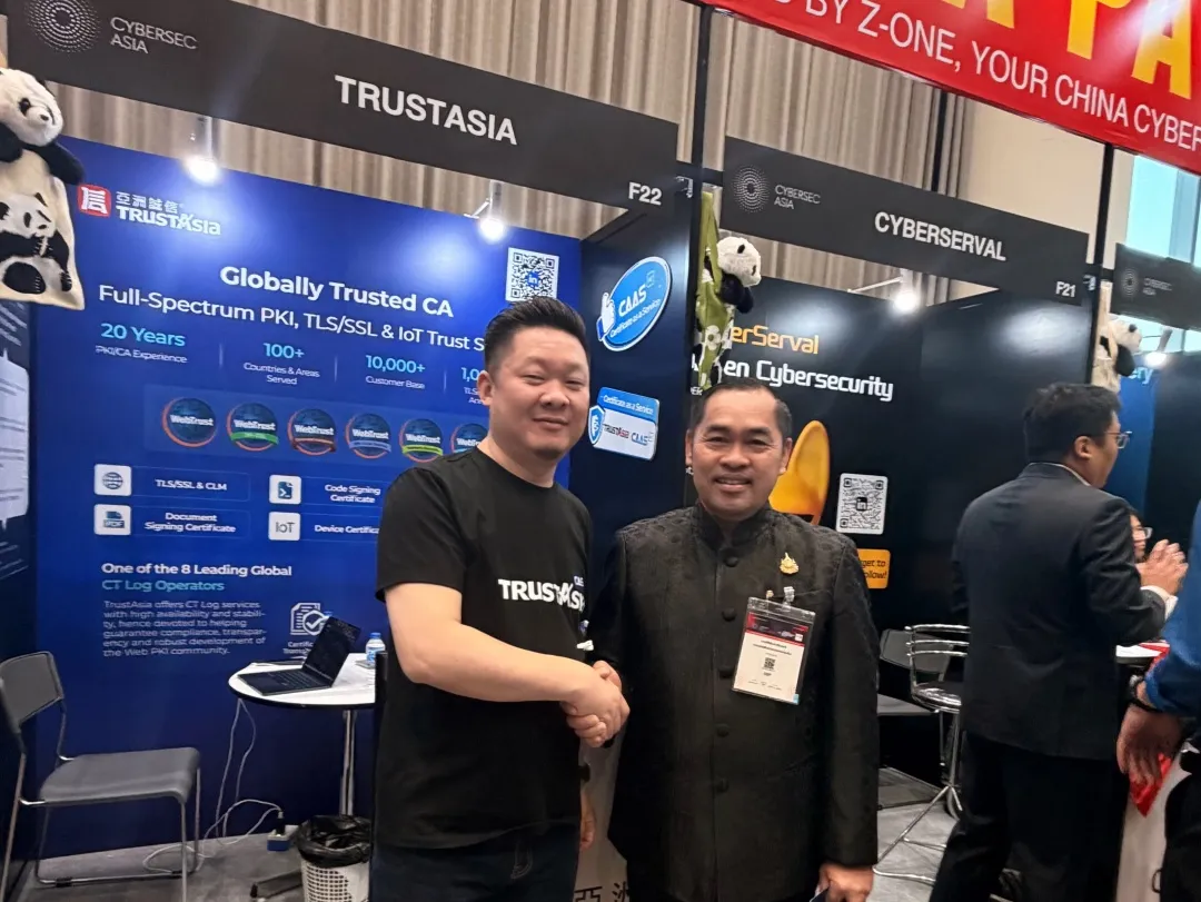 基于这些交流与观察,亚数TrustAsia 也希望借助这一国际平台,与泰国、新加坡、马来西亚等东盟国家的政府机构、企业客户及合作伙伴建立长期合作关系,共同推动区域数字安全生态的持续发展与完善。