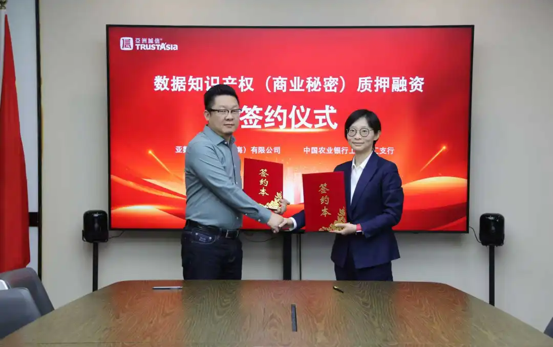 近日,亚数信息科技(上海)有限公司(简称“亚数TrustAsia”)顺利完成一批数据知识产权(商业秘密)质押融资,成为上海市徐汇区首家、同时也是全市互联网安全服务行业首家实现此类融资的企业。