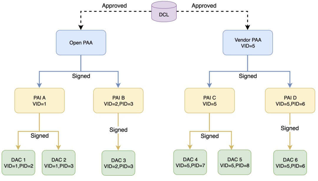 余宁强调,Matter采用了非常严格的设备证明(device attestation)PKI架构,每个设备在出厂时会被植入唯一的设备认证证书(DAC),只有在设备被验证为真实设备后,才能加入Matter网络(Matter fabric)。