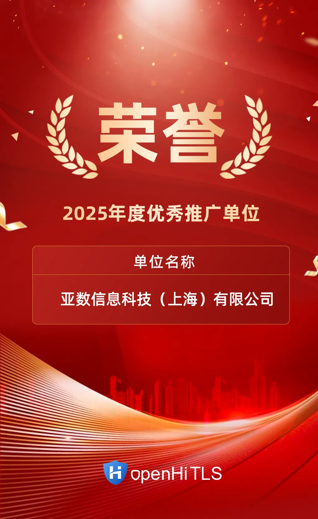 本次荣获 openHiTLS 社区 2025 年度优秀推广单位,既是对过去工作的肯定,更是一份新的责任。