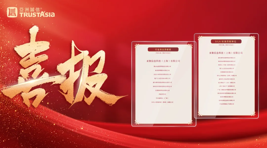 亚数信息科技(上海)有限公司(以下简称“亚数TrustAsia”)凭借在智能照明标准建设、跨生态互操作及物联网安全领域的持续投入与实践成果,荣膺 SILA“智光杯”行业突出贡献会员单位、SILA“智光杯”标准贡献会员单位。